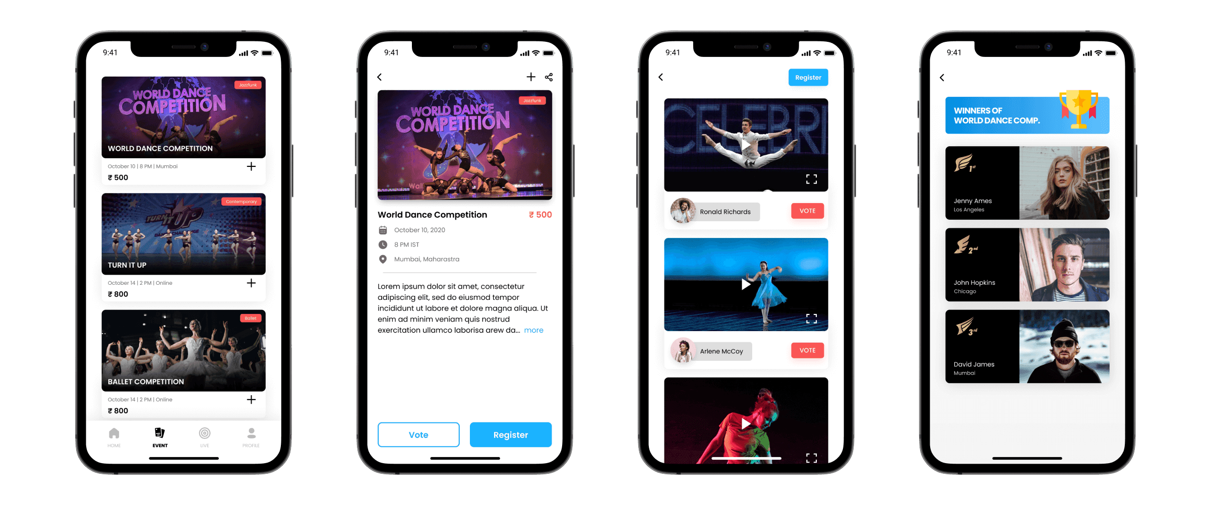 Users can register for dance events and vote for contestants, creating a vibrant community where learning transforms into celebration. Winners are determined by community votes, fostering engagement.