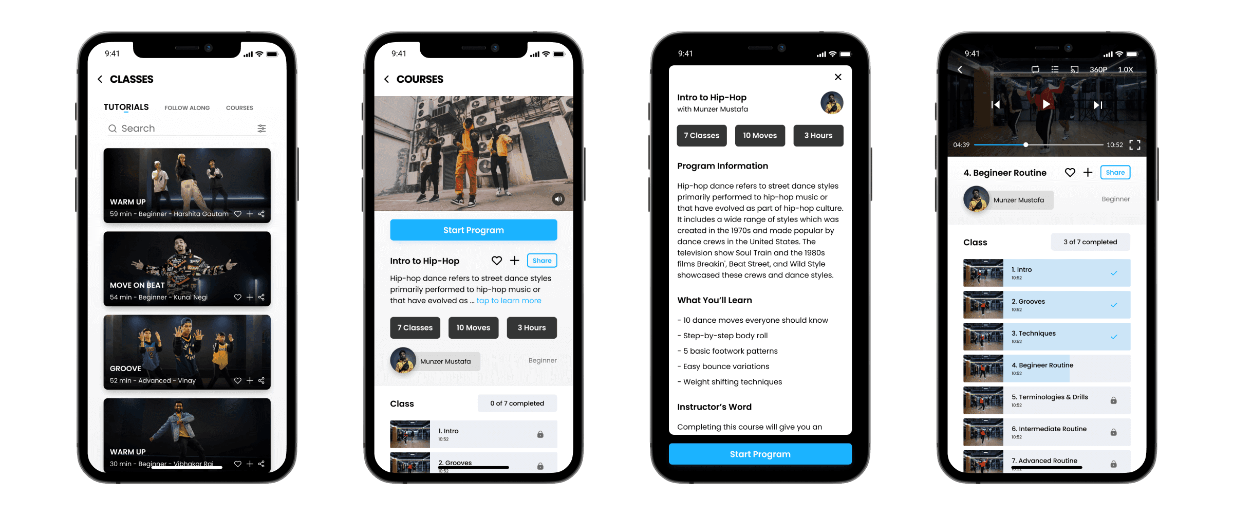 We created a comprehensive dance learning ecosystem where community meets education, complete with personalized recommendations, live interactions, competitive elements, and professional instruction.
