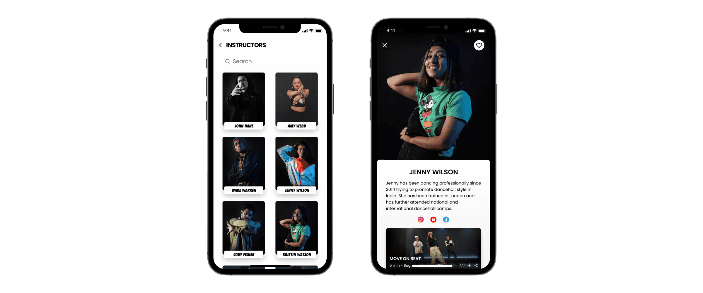 Comprehensive instructor profiles include introductions, social media links, and class offerings, helping users connect with teachers who match their learning style and goals.