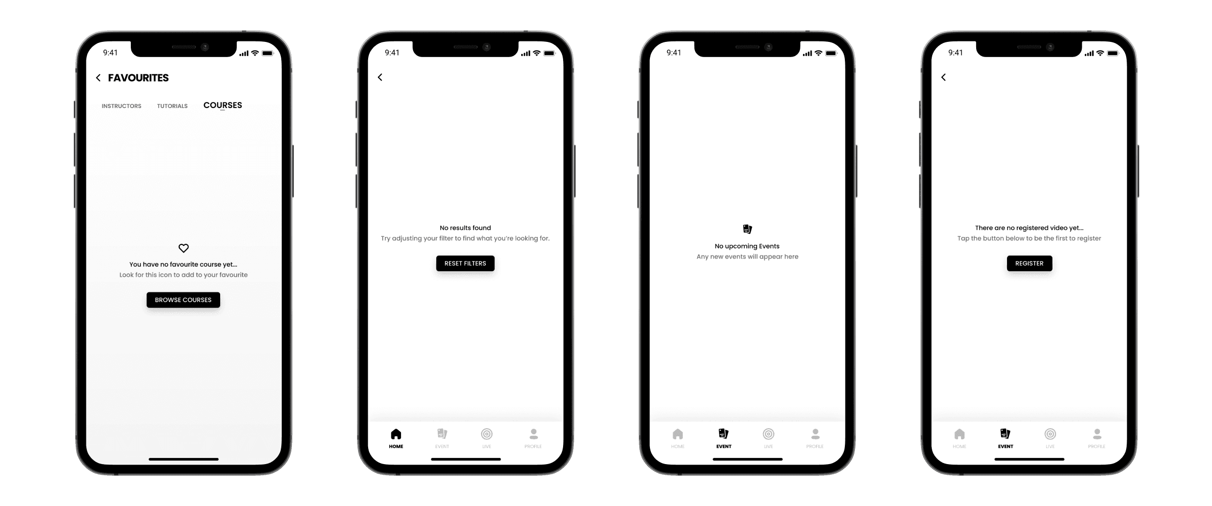 Thoughtfully designed empty states transform moments of absence into opportunities for discovery and engagement, guiding users toward their next dance adventure.