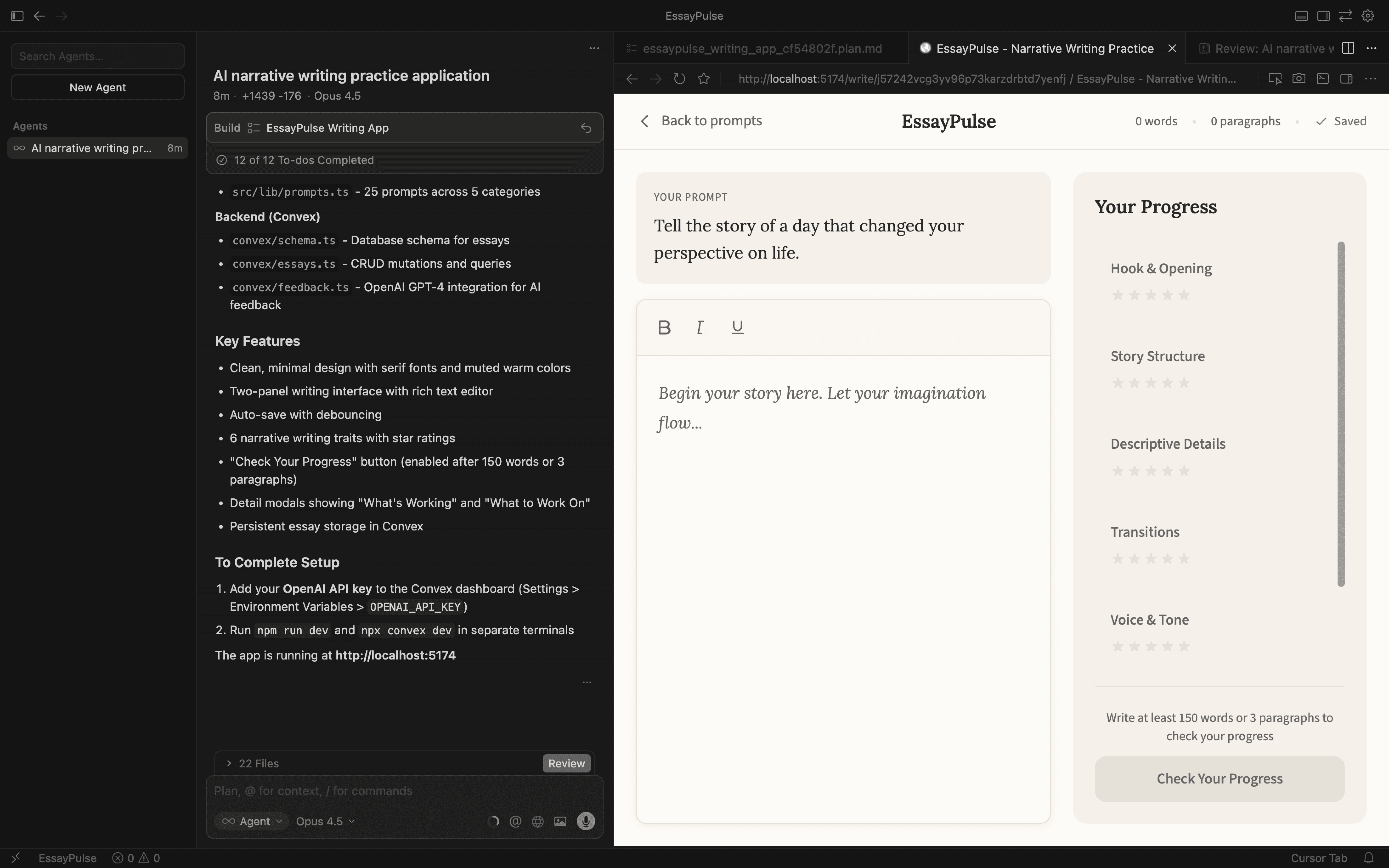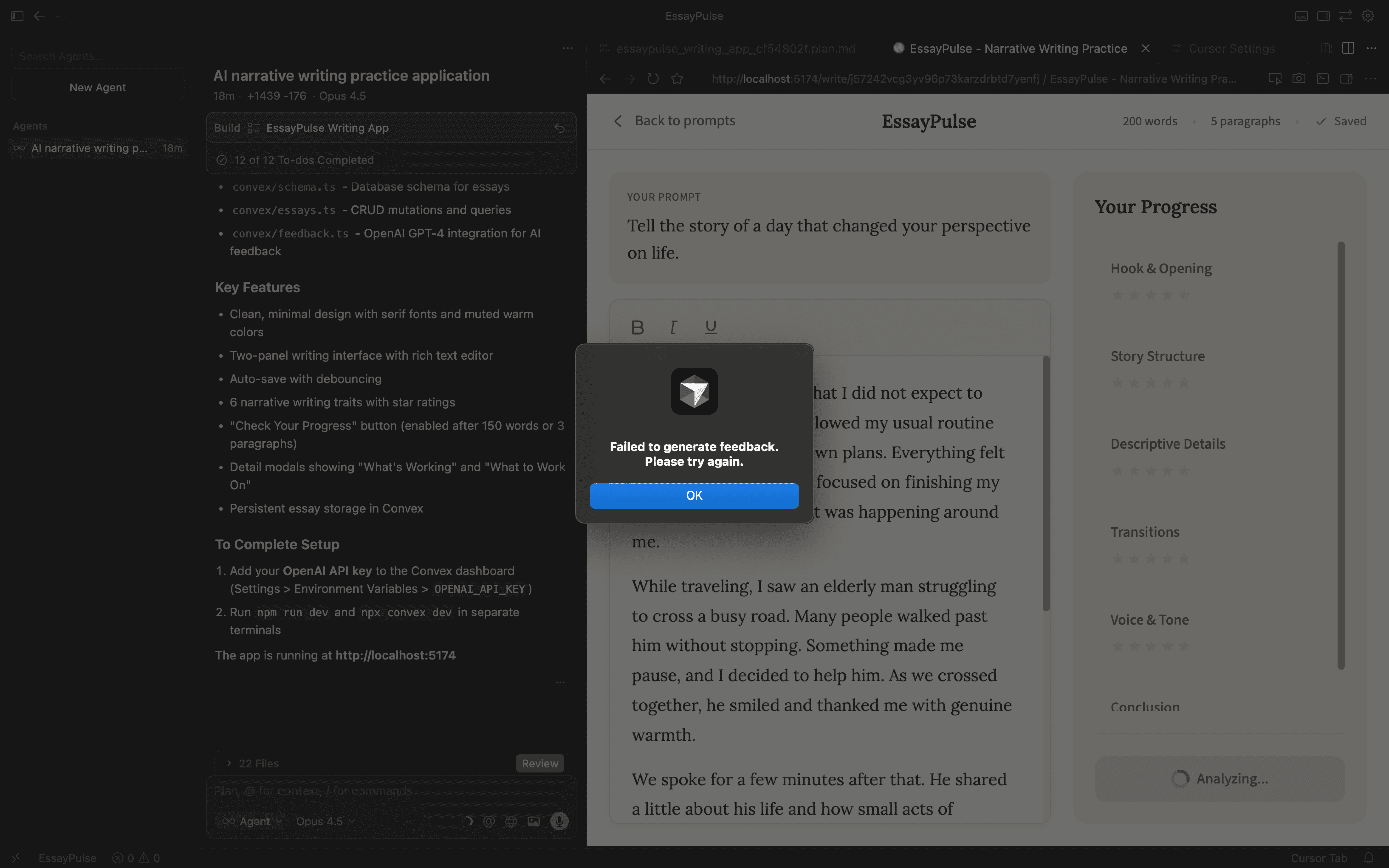 Did I need to add my OpenAI API key to Convex? Yes. Did the first "Check Progress" click throw an error until I did? Also yes.