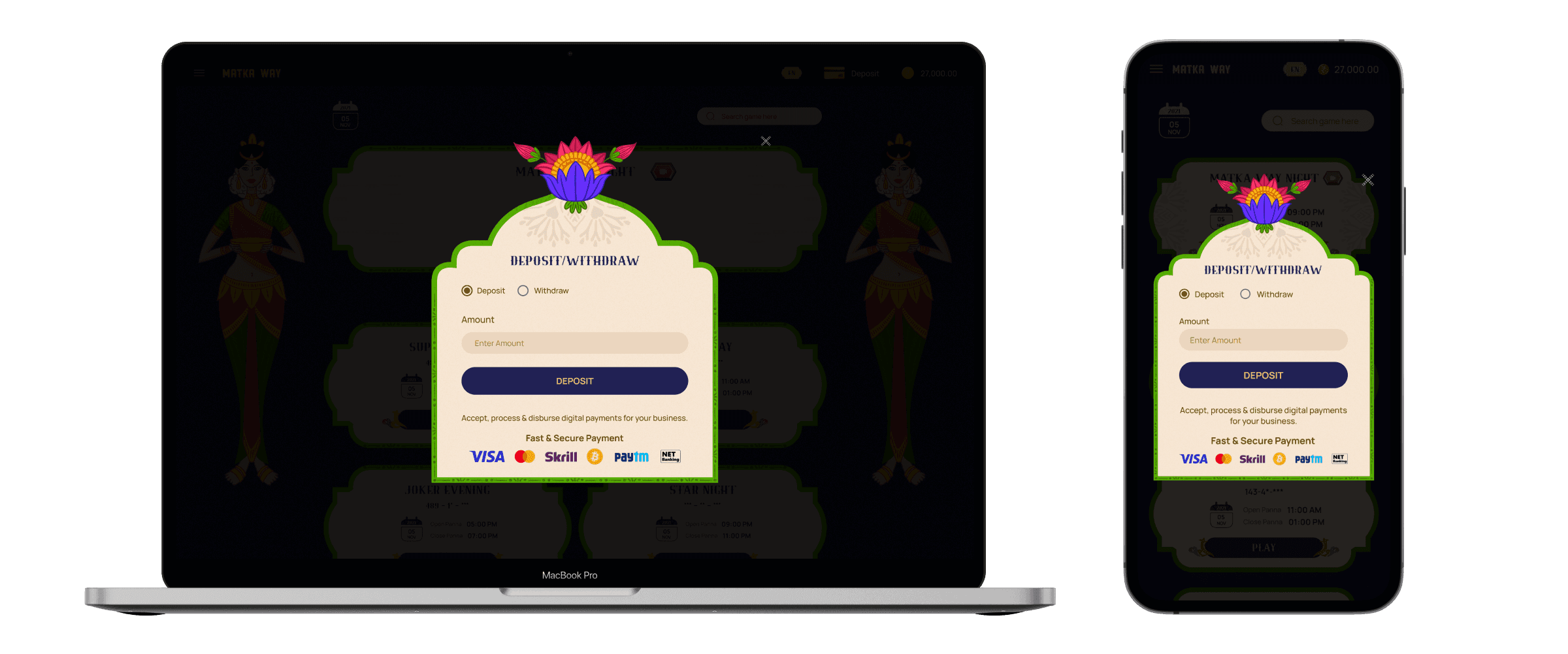 Matka Way is a culturally-rich gaming platform that brings the traditional Indian Satta Matka experience into the digital age. By blending authentic visual elements, intuitive navigation, and immersive storytelling, we created a gaming experience that feels both familiar and fresh.