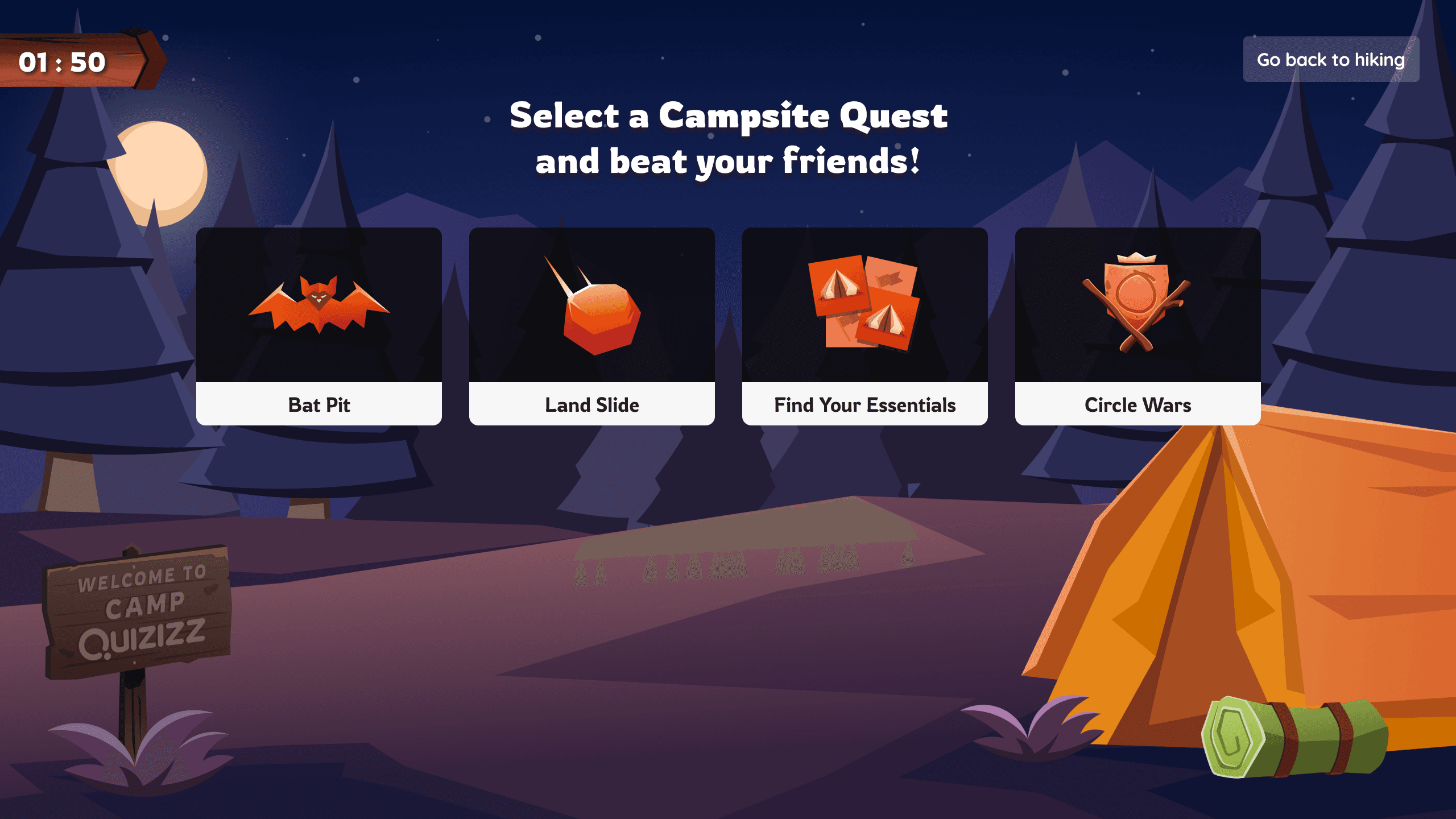 Students enter a beautifully illustrated mountain landscape where they can see themselves alongside classmates. The avatar customization system (adapted from Quizizz) allows personal expression and builds investment in the experience.